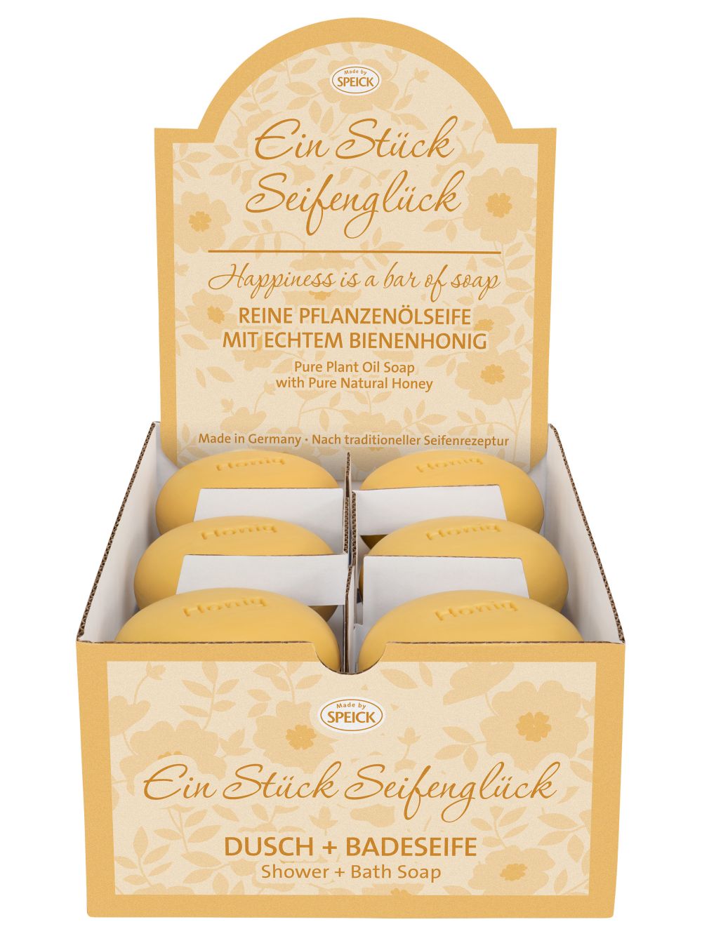 Ingrediënten: INCI: Sodium Palmate, Sodium Cocoate, Aqua, Sodium Olivate, Glycerin, Mel, Calendula Officinalis Flower Extract, Parfum, Cetearyl Alcohol, Glyceryl Stearate, Potassium Stearate, Potassium Palmitate, Sodium Gluconate, Sodium Chloride, Sodium Thiosulfate, CI77492, CI77891, Benzyl Alcohol, Coumarin, Eugenol, Linalool