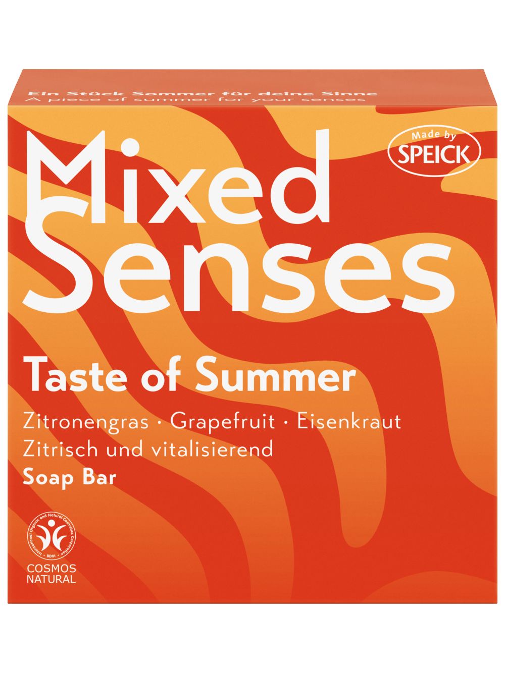 Mixed Senses – een zeepcreatie die je onderdompelt in een citrusachtig en vitaliserend geurbeleving en de frisheid van een zomerse dag vangt. Een stukje zomer dat je zintuigen prikkelt. Gemaakt volgens de traditionele zeepreceptuur van Speick Naturkosmetik met gecertificeerde palmolie (RSPO), evenals kokos- en olijfolie. Zacht reinigend met een rijk, romig schuim. Gebruiksaanwijzing: Zeep opschuimen in koud of lauw water en genieten van het heerlijk geurende, verzorgende romige schuim. Zacht voor de huid, ook bij dagelijks gebruik op het lichaam. Verpakking: FSC-gecertificeerde kartonnen vouwdoos, bedrukt met milieuvriendelijke inkten. Voor optimale recycling de vouwdoos bij het oud papier weggooien. Gecertificeerde natuurcosmetica (COSMOS): Zonder synthetische geurstoffen en minerale oliën. Glutenvrij en lactosevrij. Basische verzorging.
