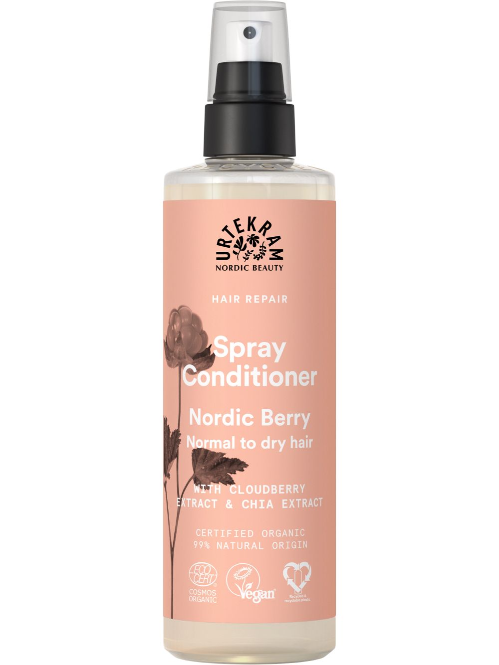 Urtekram Nordic Berry Spray Conditioner is volgens Ecocert Greenlife gecertificeerd. Al sinds de jaren 1970 heeft Urtekram pure en natuurlijke producten voor huid-, haar-, en lichaam gemaakt. Men is er zich altijd bewust van geweest dat het lichaam alles opneemt. Eigenlijk net zoals je lichaam voedingsstoffen uit je eten opneemt.
