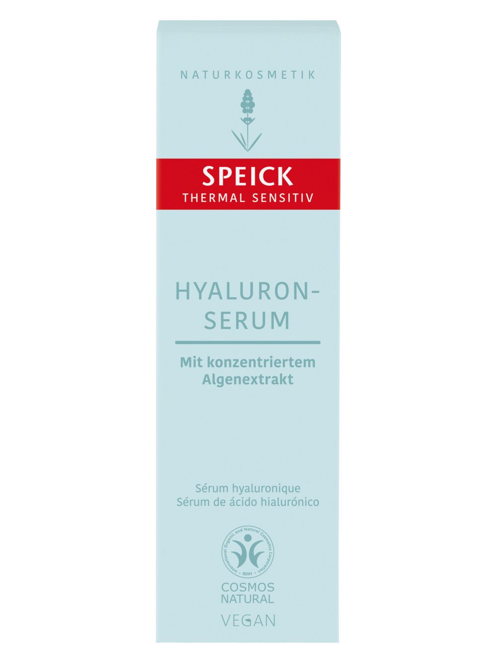 Hyaluronzuurserum met onmiddellijk effect. Ondersteunt de huid actief bij het hydrateren en revitaliseert onmiddellijk. Met de kracht van kiezelhoudend thermaal water uit Schlangenbad. Met effectief hydraterend zuiver plantaardig hyaluronzuur, en met huid-beschermend, stabiliserende ectoine met herstel-effect. Tot slot bevat Speick Hyaluronzuurserum geconcentreerd algenextract voor het reguleren van de huidbalans en verzachtende organische aloë vera-gel. Zonder synthetische geurstoffen, kleurstoffen en conserveringsmiddelen, zonder op minerale olie gebaseerde grondstoffen, siliconen, parabenen.